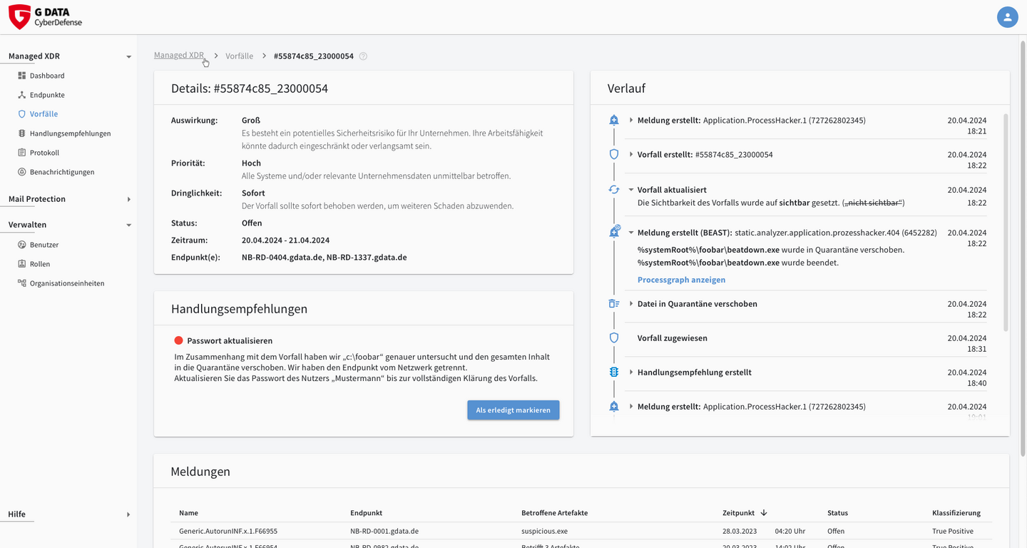 - Unsere XDR-Technologie schlägt rund um die Uhr bei verdächtigen Vorgängen Alarm.