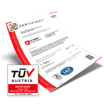 Mit der Zertifizierung nach ISO 27001 gewährleisten wir die fortlaufende Verbesserung der Prozesse, die zur Informationssicherheit beitragen.