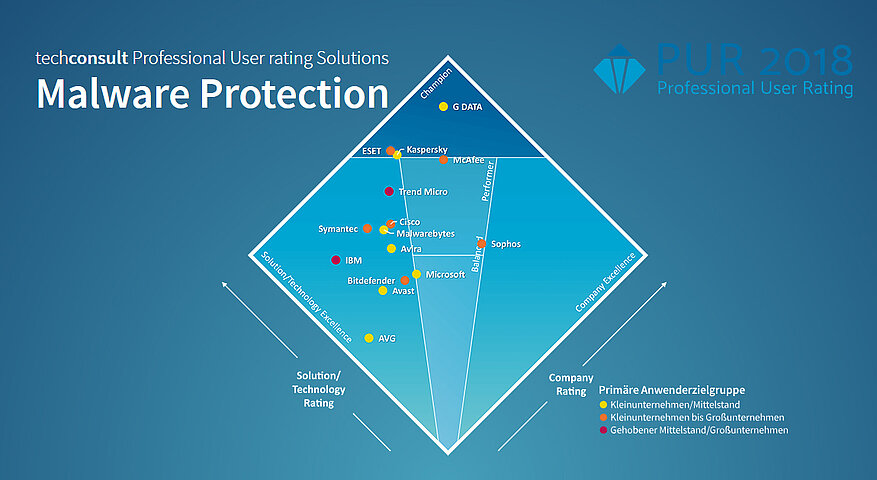 Für die Studie wurden insgesamt 2.000 Anwender von Business Lösungen zur Aufstellung des Security-Anbieters und der eingesetzten Sicherheitslösung befragt. Das Ergebnis kann sich sehen lassen: G DATA erzielte das beste Ergebnis und wurde insbesondere für seine Innovationskraft, das Partnermanagement und die Preis- und Bezugsmodelle ausgezeichnet.
